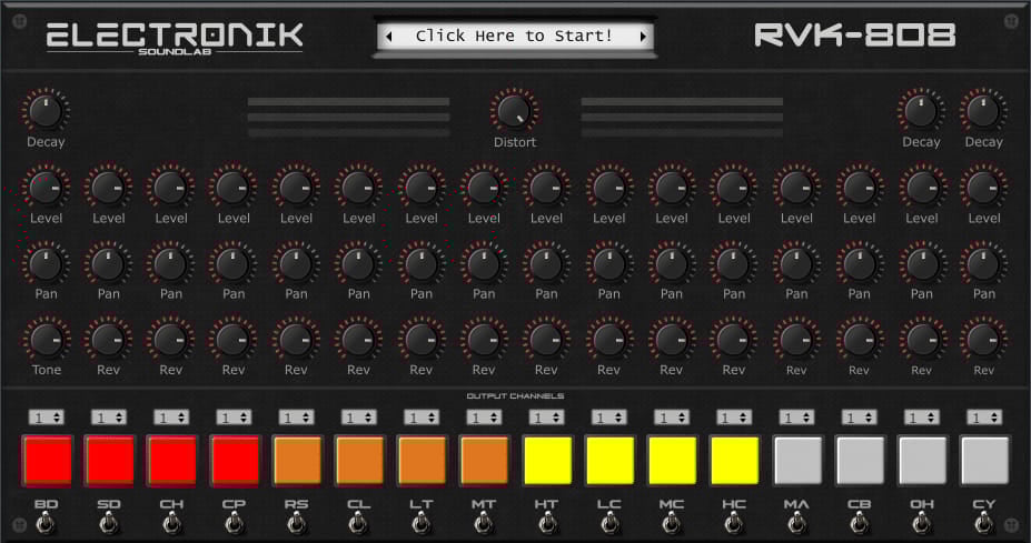 RVK-808 is a free 808 plugin by Electronik Sound Lab. It is a sample-based virtual 808 with sixteen drum channels, built-in reverb/distortion, and individual outputs for each channel.