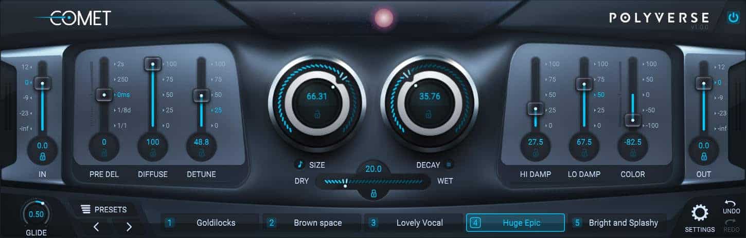 Polyverse’s Comet doesn’t disregard the physics of a natural acoustic space altogether, even though “nature” is obviously not the center of attention here. Instead, there’s a very strong focus on producing HUMONGOUS spaces that you would never encounter in the real world… I know, I know, Comet isn’t the first reverb plugin to venture off in this direction, but it’s so far out there on the fringes of enormity that I think it just might be the biggest “big verb” I’ve laid ears on.