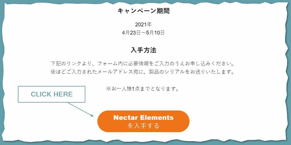 The page is in Japanese, but it’s quite easy to get the download. First, scroll all the way down the page and click the “Nectar Elements” button.