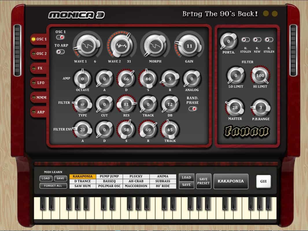 Fanan Team Pro releases Monica 3, a freeware dual-layered 90’s style synth VST plugin (64-bit VST2/VST3) for Windows.