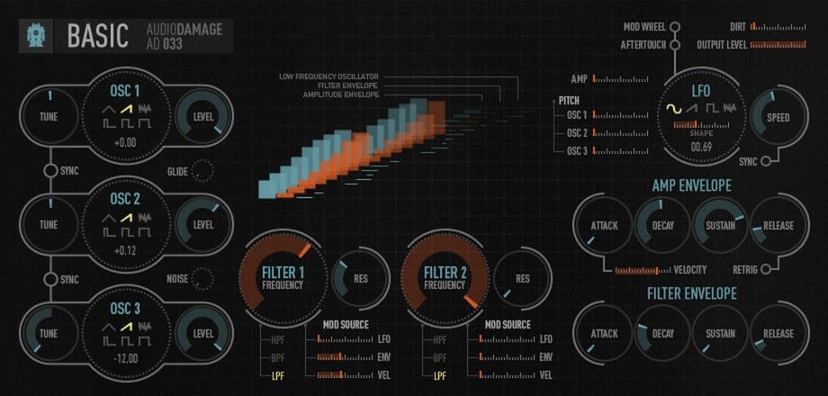 Basic is an interesting virtual analogue synthesizer (32-bit and 64-bit VST/AU plugin format for Windows and Mac OS) developed by Audio Damage. Priced at $39 and offered as a digital download on the developer’s website, this deceptively simple looking virtual instrument packs a rather characterful subtractive synthesis engine into a streamlined and easy to use package.