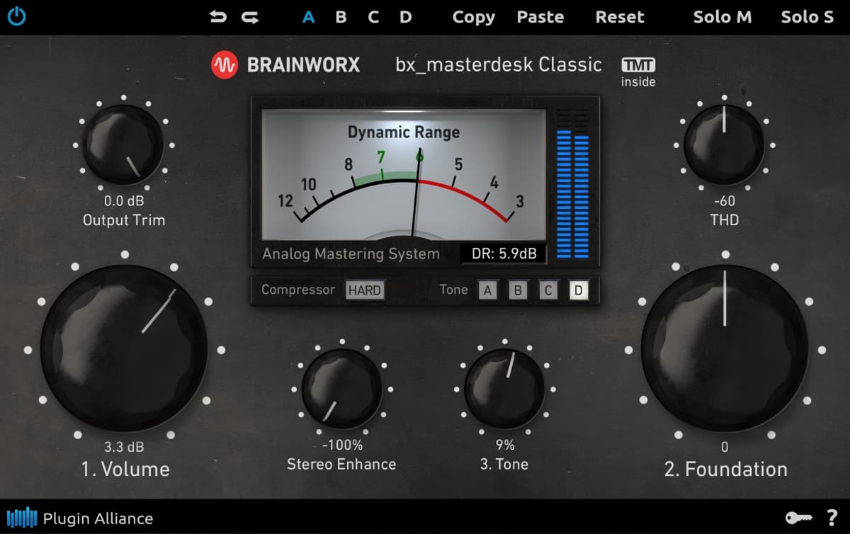 “Brainworx’ bx_masterdesk Classic gives you the sound of a complete high-end analog mastering system in one incredibly easy-to-use plugin. Dial-in professional-sounding masters in just 3 simple steps.”