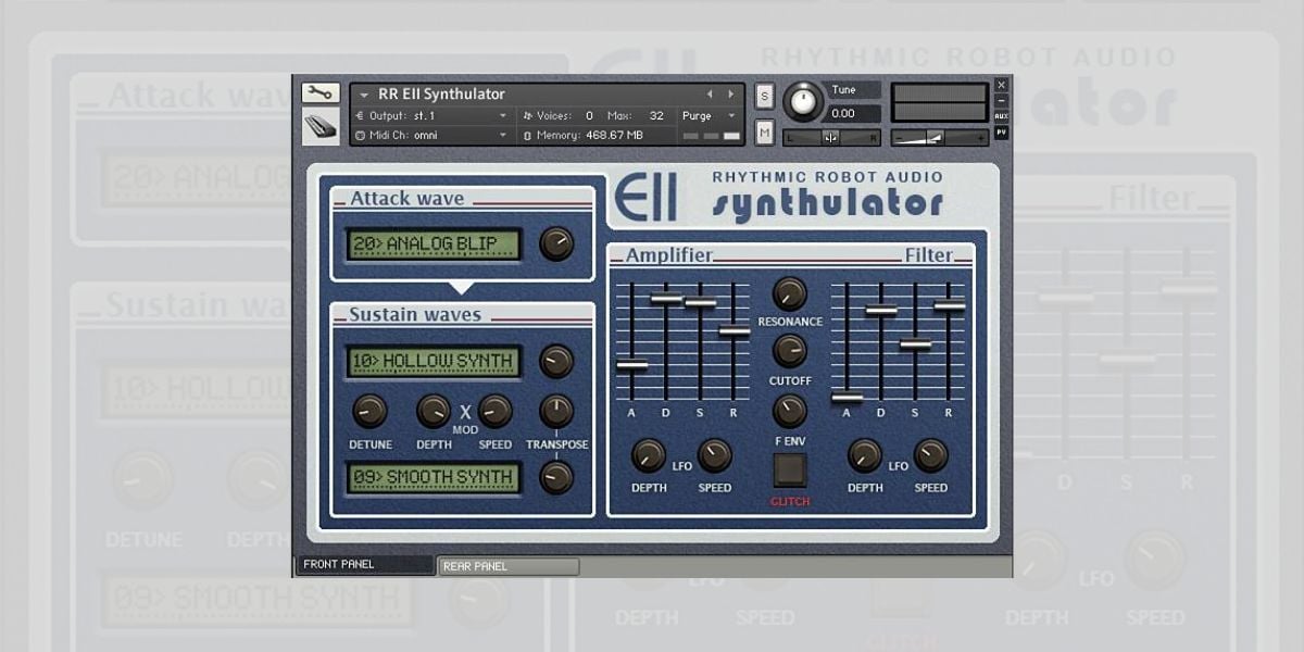 The Synthulator starts fundamentally with a number of unique soundbanks, including the essential analog waveforms such as saw, sine, square, pulse, triangle, etc.). These were stamped with a beautiful 8-bit sonic impurity and sampled into the EII and then back out again.