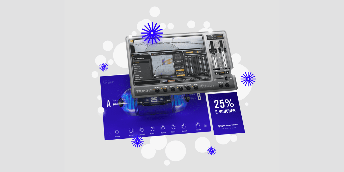 Native Instruments announced the Holiday Gift 2021, a free gift for all music producers. The freebie includes iZotope’s Trash 2 ($99), Play Series: TWENTY FIVE, and a 25% OFF e-voucher from Native Instruments.