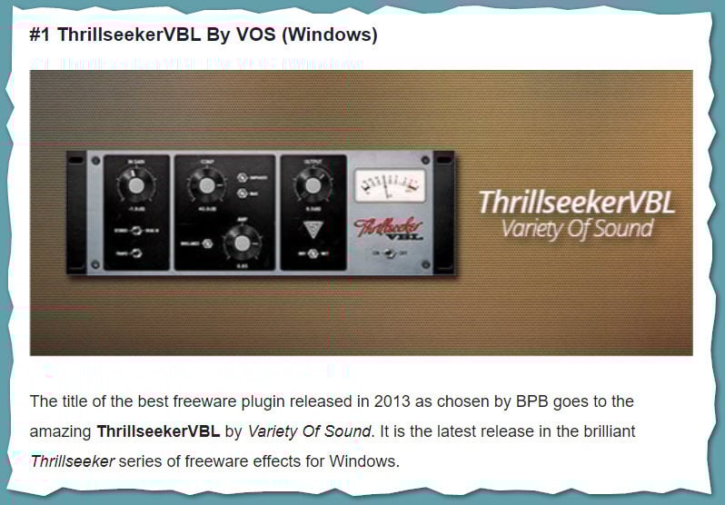 ThrillseekerVBL has been around for a long time. Seasoned BPB readers will remember that it was selected as the best freeware plugin of 2013 on our website.