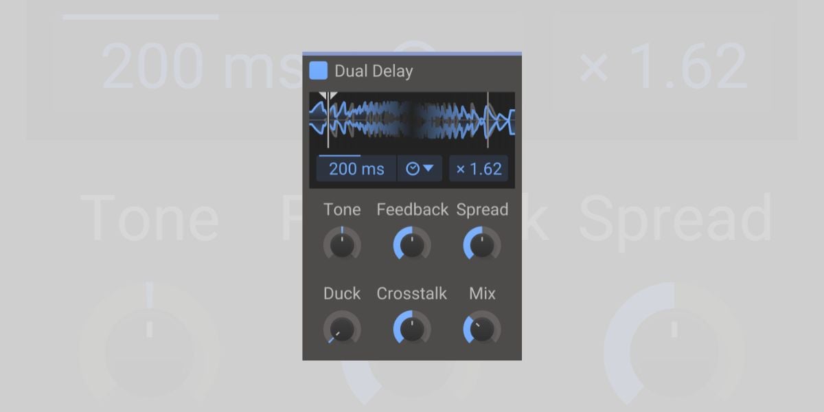 Once you set the delay times, you have six controls to tweak: Tone, Feedback, Spread, Duck, Crosstalk, and Mix.