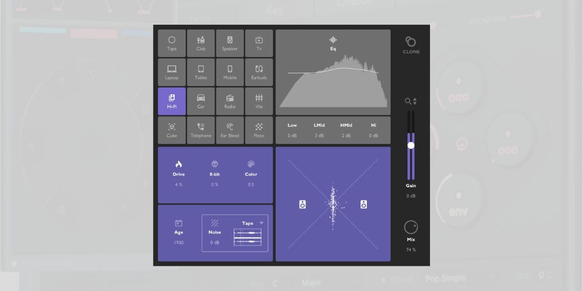 CLONE is an emulation of various playback speakers and systems. It is intended to check for mix coherence across a variety of devices. There are over sixteen emulated devices to choose from, with popular choices like club speakers, mobile devices, and cars being among the many selections to choose from.