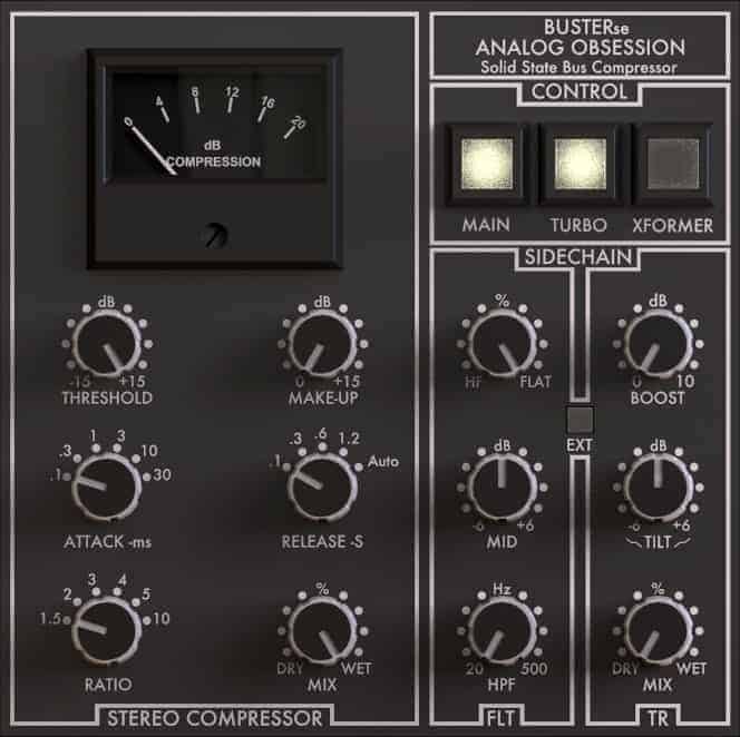 Analog Obsession has released BUSTERse, a freeware bus compressor effect in VST, VST3, and AU plugin formats for compatible digital audio workstations on PC and Mac.