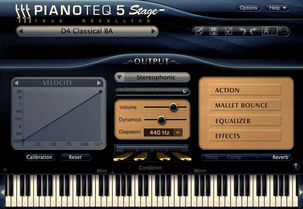 Pianoteq 5.3 is the current version of their piano application, and it comes in three flavors – Stage (99 EUR), Standard (249 EUR) and Pro (399 EUR). 679 EUR gets you Pianoteq Studio which contains the Pro version plus all currently available instruments. It can work as a standalone application, VST, AU, AAX or RTAS plugin. More than just pianos, it can also model harps, bells, mallet instruments, harpsichords and even hammered dulcimers.