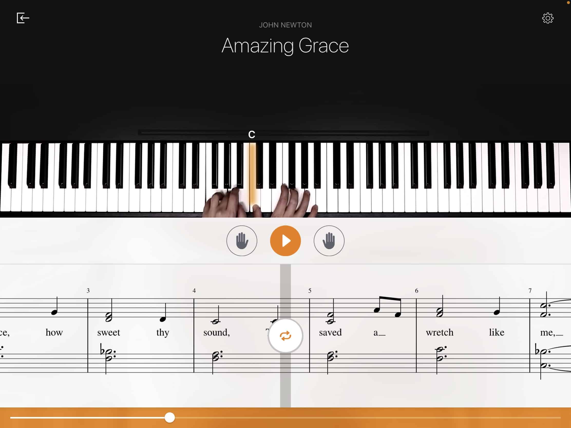 After selecting a song and the desired skill level, you can watch a professional pianist perform the sheet music shown in the lower half of the screen.