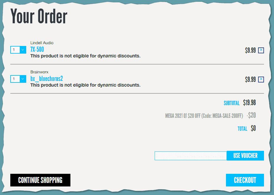 The recently launched MEGA Sale includes over a hundred plugins from developers like Brainworx, Shadow Hills, Lindell, and more. The deals are starting at $5, and you can actually grab a couple of freebies by applying the $20 coupon code to your order.