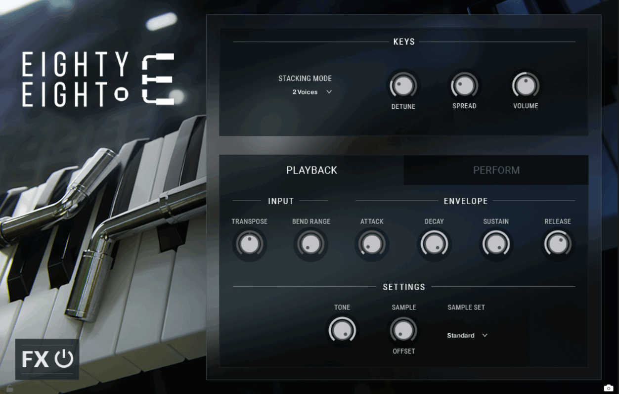 Impact Soundworks used a similar concept for The 88E library, but with a more flexible approach. This virtual piano can play other notes, too, and comes with various adjustments. You can customize the envelope, transpose the keys, apply pitch bending, change the microphone position, and more.