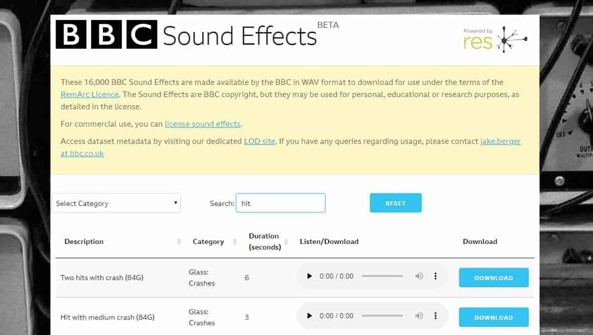 The cool thing about the BBC Sound Effects website, as opposed to 99Sounds and Sonniss, is that you don’t have to download a bunch of sounds in one massive package. Instead, you can search their sound effects database and only download the sound effects that you really need.