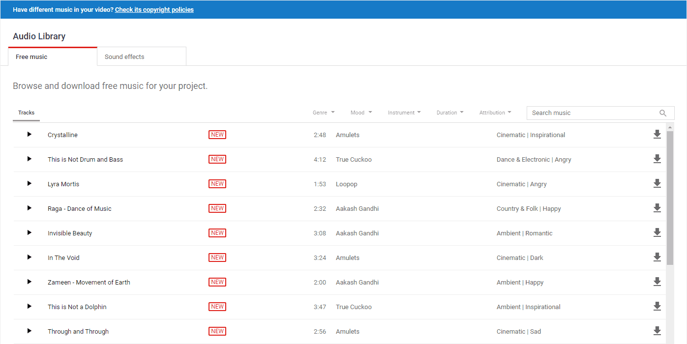 More info: YouTube Audio Library