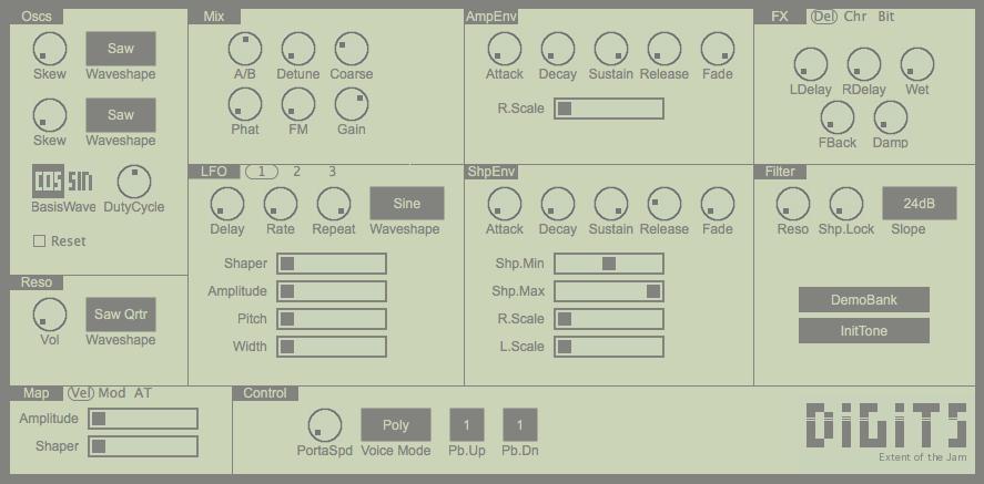 Extent Of The Jam has released Digits 2, an updated version of their freeware Casio CZ series inspired phase distortion virtual synthesizer VST plugin for PC and Mac.