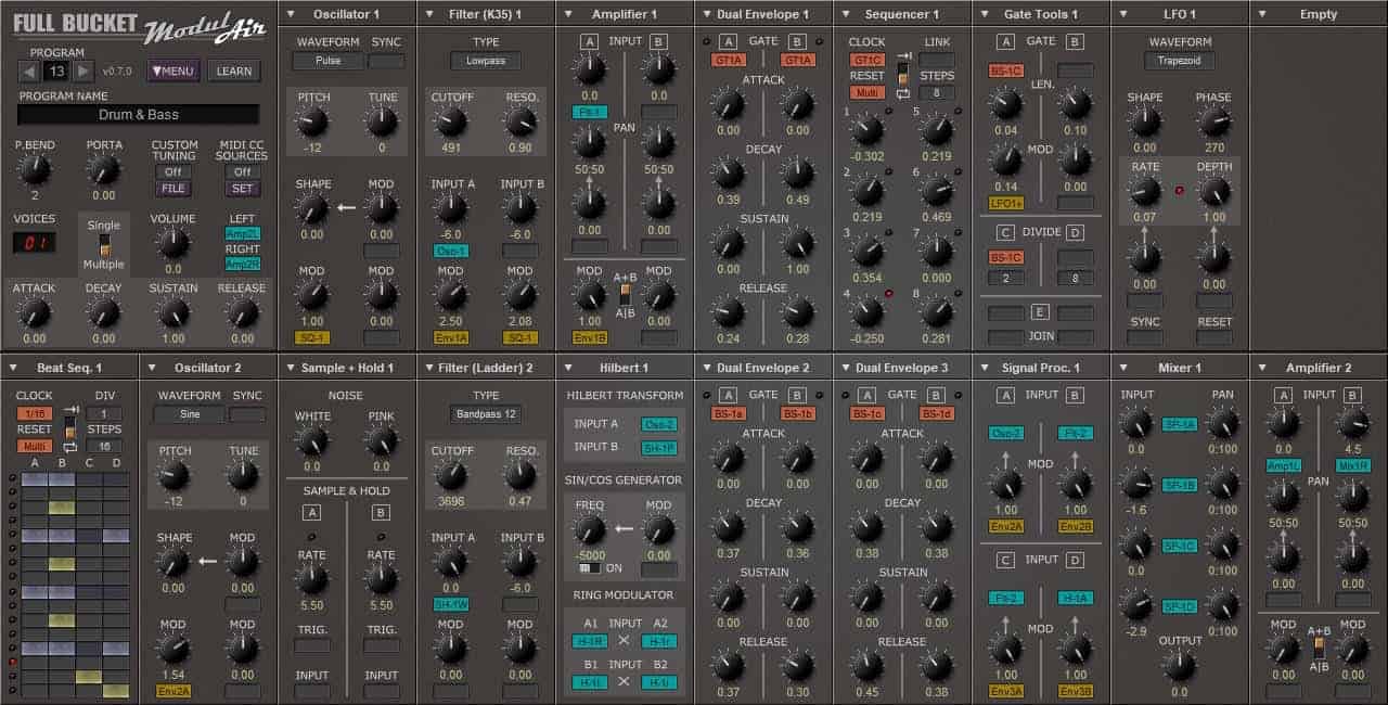 Full Bucket Music has introduced the beta version of ModulAir, a forthcoming freeware modular synthesizer in VST and AU plugin formats for compatible digital audio workstations on PC and Mac.