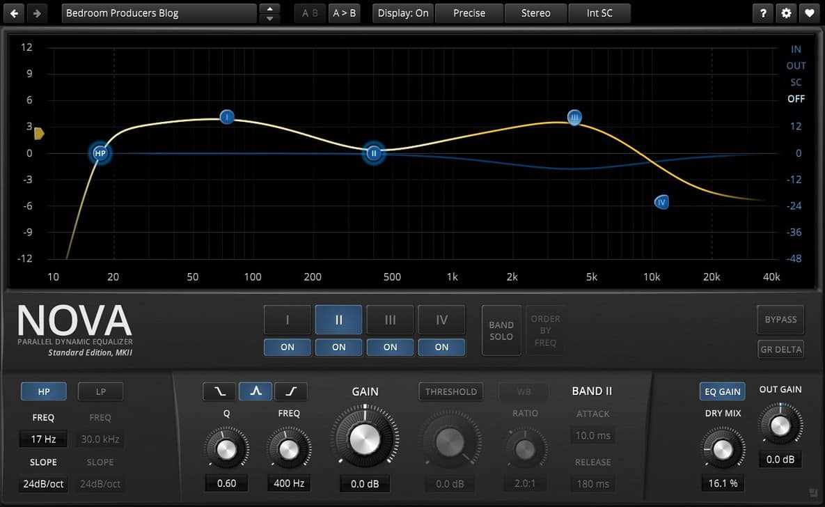 TDR Nova is the best free equalizer plugin you can add to your music-making software toolbox. It is a four-band dynamic equalizer with an additional high-pass and low-pass filter.
