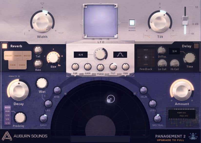 Panagement 2.0 is a multi-effect plugin designed as an all-in-one solution for audio spatialization. It combines binaural positioning, reverb, and delay effects in a single unit.