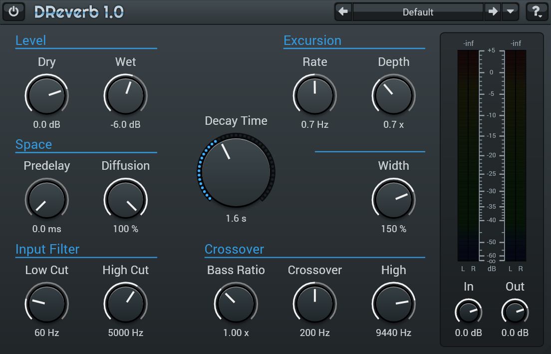 DReverb by is an algorithmic reverb plugin that offers unusually long decay times, a highly flexible reverb engine, and CPU-efficient performance. Advanced users will likely take advantage of DReverb’s in-depth control layout, which lets you fine-tune almost every aspect of the reverb algorithm.