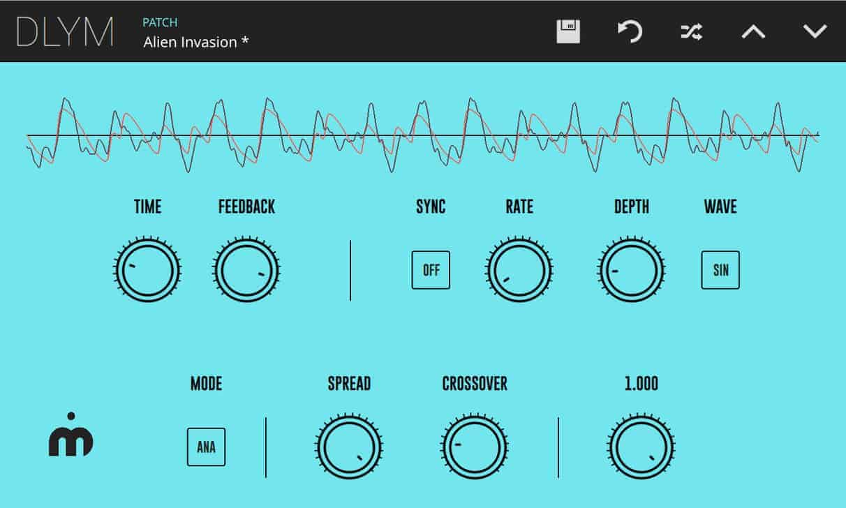 If you liked DRC’s clean and streamlined user interface, you’ll love how DLYM looks. The GUI is nicely laid-out, with intuitive controls and large dials that are easy to use. The real-time waveform display on the top helps visualize the plugin’s effect on the processed audio signal.