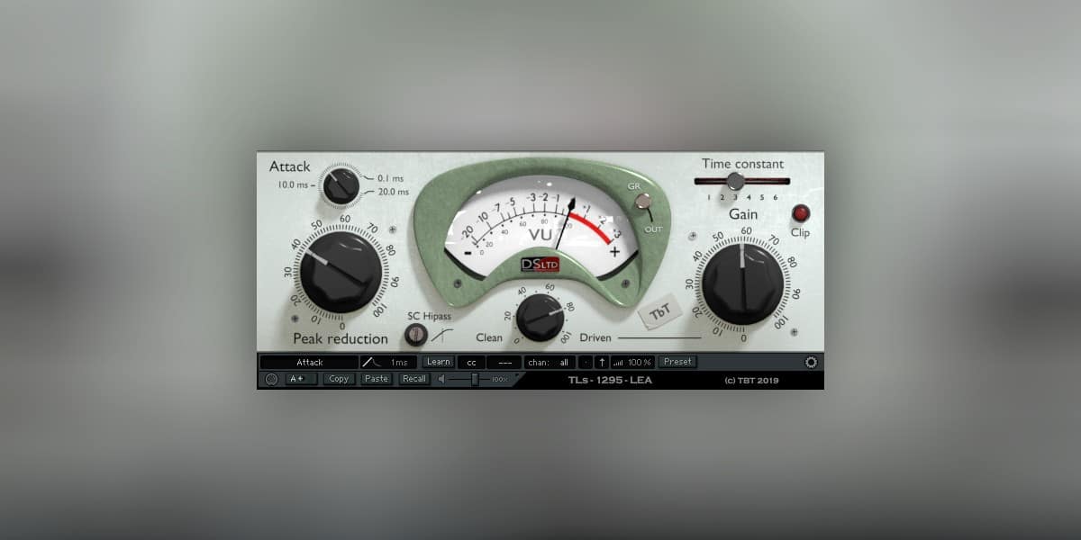 TLS 1295 LEA lets the user fine-tune the attack time and the time constant, making the compressor capable of processing a wide range of audio material. The plugin handles drums and percussion really well, but you can slow it down, too. With relaxed settings, TLS 1295 LEA is excellent for adding grit and presence to vocal recordings.