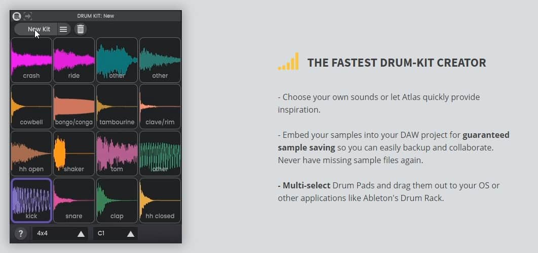 Atlas 2 is more than just a creative sample manager, though. It features a handy Drum Kit creator, a Sample Editor, and a Drum Sequencer with humanization, polyrhythms, drag-drop import, recording, export to DAW, and more.