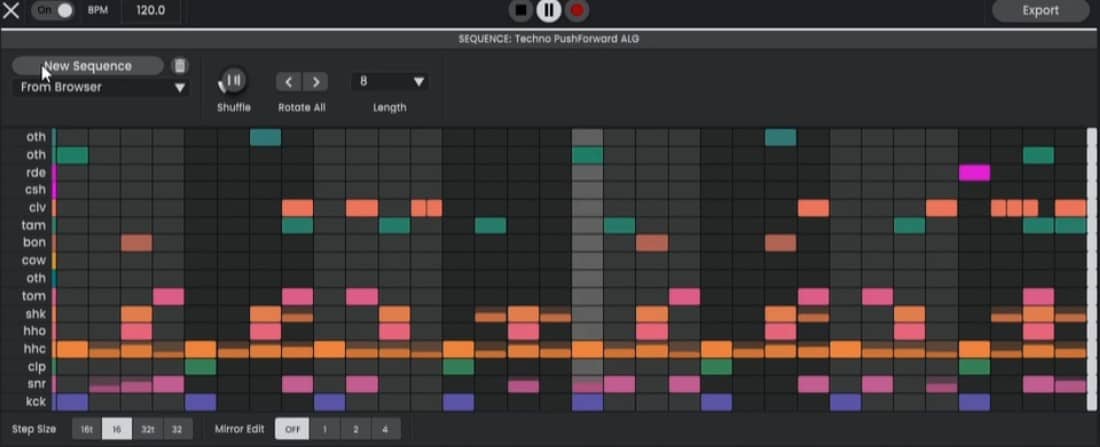 Once you have created some sequences, you can modify or combine them easily. The sequences can be exported to the DAW for further editing and integration with your projects.