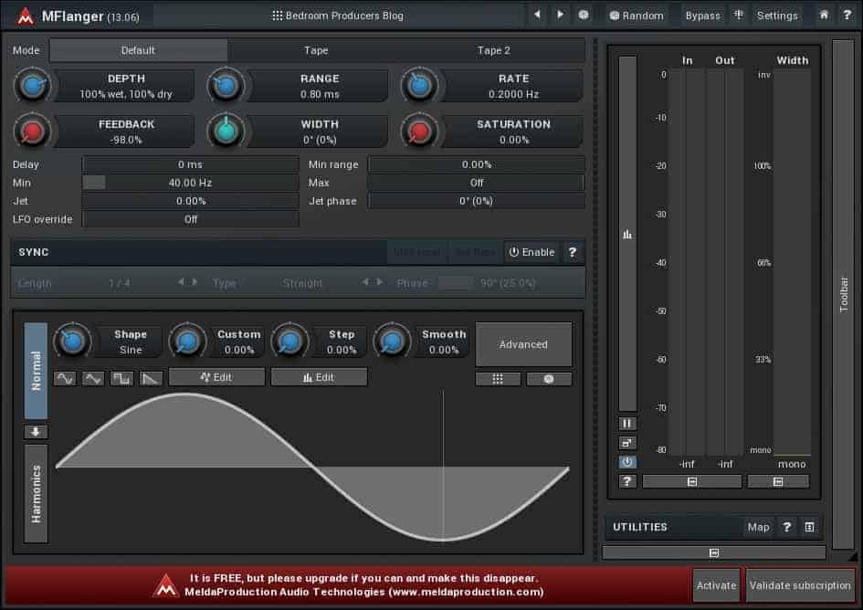 Blue Cat’s Flanger is available in mono or stereo versions. This free flanger VST plugin works great on any audio source, as well as every phase (pun intended!) of the production process. It comes in multiple formats, including VST, VST3, AU, AAX, and RTAS, so no matter what DAW you use, it can integrate with it. It’s a well-rounded flanger that can run the spectrum of classic rock sounds to more modern music production.