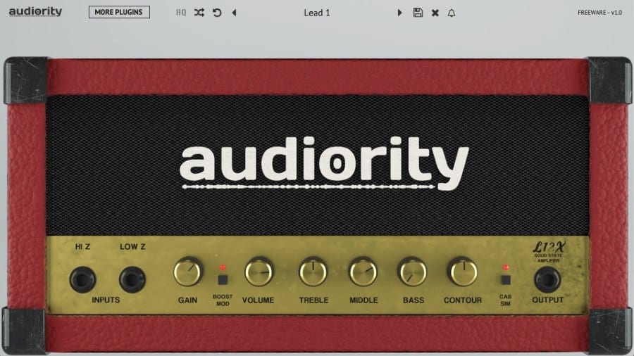 Audiority’s free L12X Solid State Amplifier is based on the Marshall Lead 12 head of the late ’80s, which is renowned for its ability to get very loud. This emulation has two channels (clean and boost), a contour knob for a more scooped tone, and an additional boost overdrive stage.
