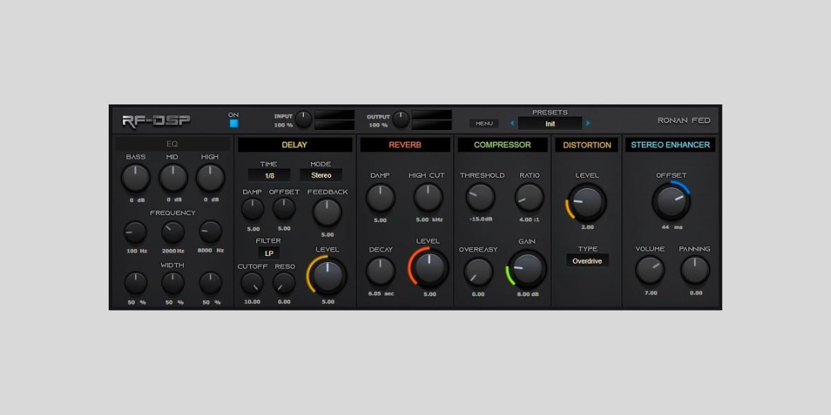 Ronan Fed released RF-DSP, a freeware multi-effect in VST plugin format for compatible DAW software on Windows.